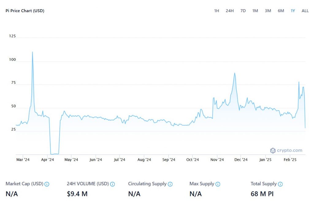 As 2025 began, Pi Coin slipped below $50 in January and February, briefly rallied above $75, and then declined once more.