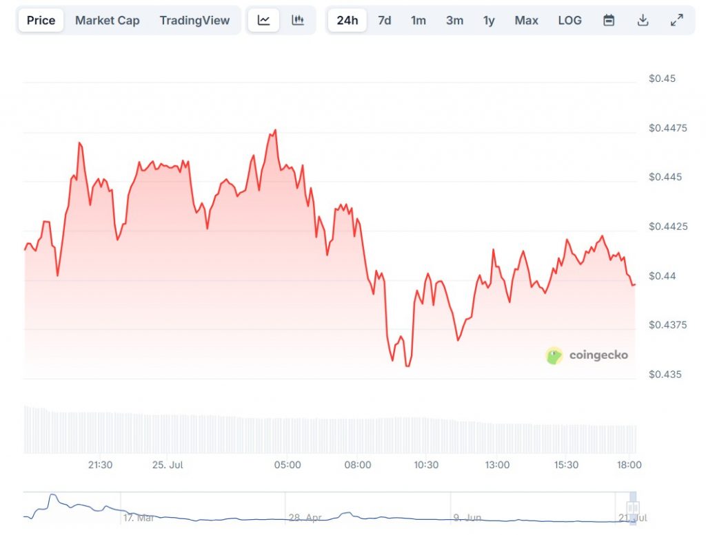 At the time of writing, Pi Network is priced at $0.4398, with a market capitalization of $3,395,985,359 and a 24-hour trading volume of $75,170,259.