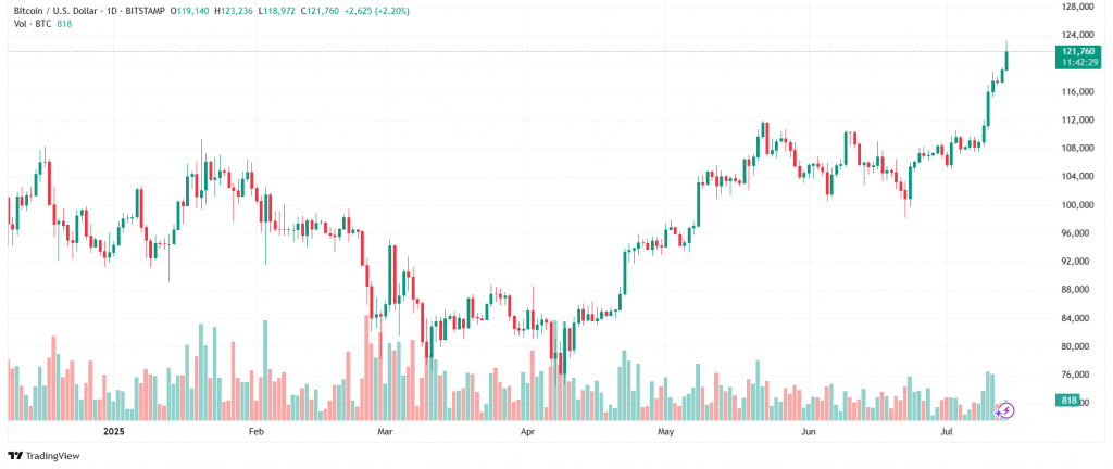 Bitcoin has reached a new all-time high, climbing above $120K in early trading today and surpassing its previous peak of $118K recorded just days earlier. The surge reflects a sharp acceleration in market momentum driven by institutional participation and tightening supply. Beyond the numbers, this milestone underscores Bitcoin’s expanding influence within global finance. As the asset continues to attract sovereign reserves, ETF flows, and long-term holders, its transition into a mature macro asset class appears increasingly evident.