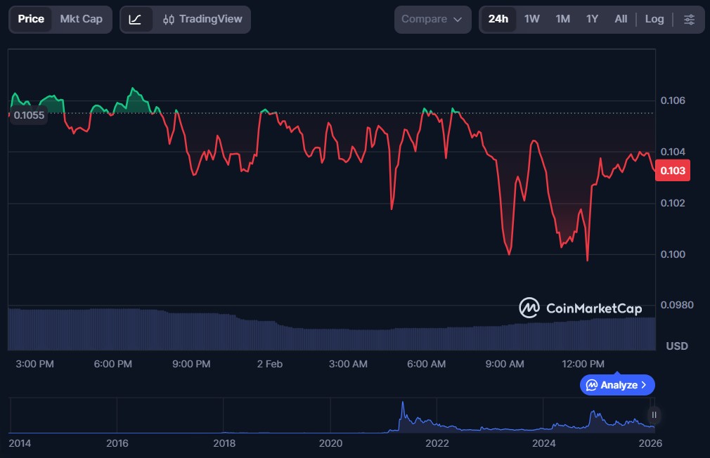 | Dogecoin (DOGE) | $0.1036 | $17.40 billion | $2.13 billion |