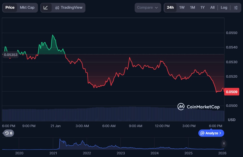 Currently valued at $0.05095, CHZ holds a market capitalization of $521.17 million and has seen $102.97 million in trading activity over the past 24 hours.