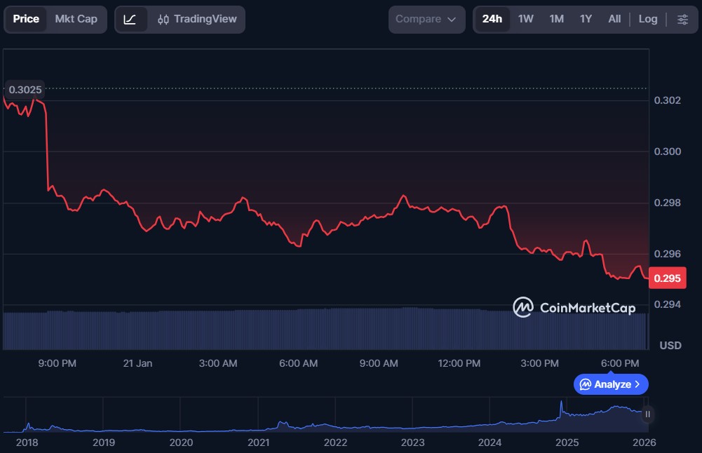 With a 24-hour trading volume of $726.24 million and a market capitalization of $27.94 billion, TRX is trading at $0.2950 per token.