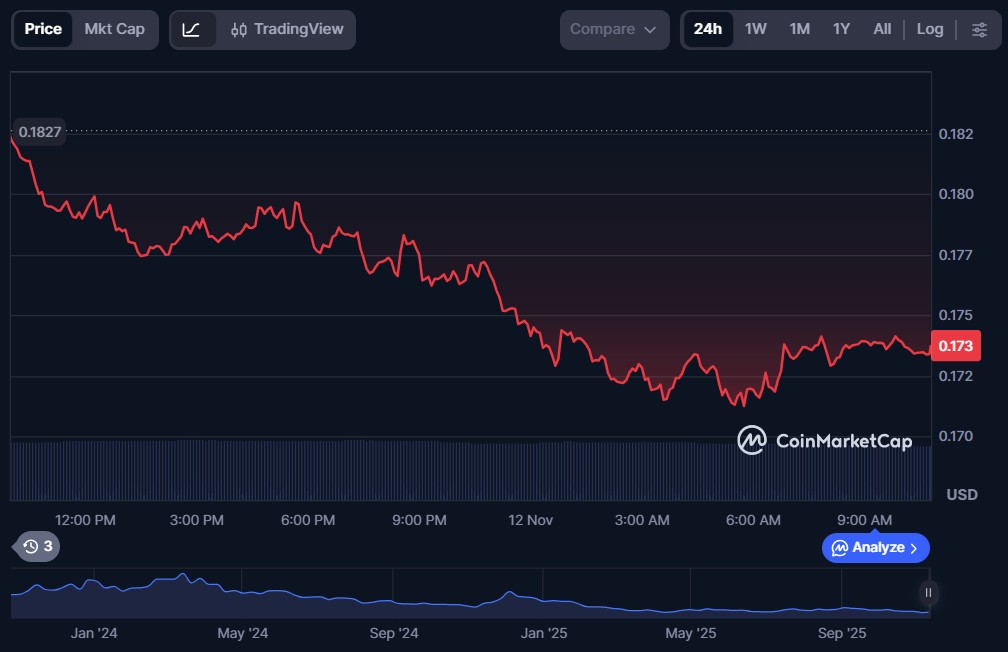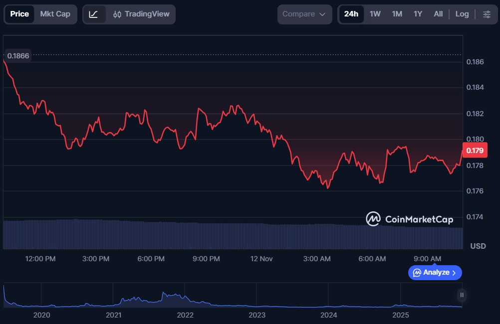 At the time of writing, ALGO is priced at $0.1791 and has a market capitalization of $1.57 billion.