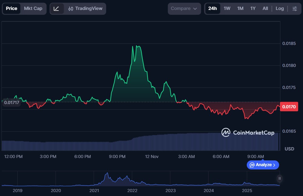 At the time of writing, VET is priced at $0.01705 with a market capitalization of $1.46 billion.