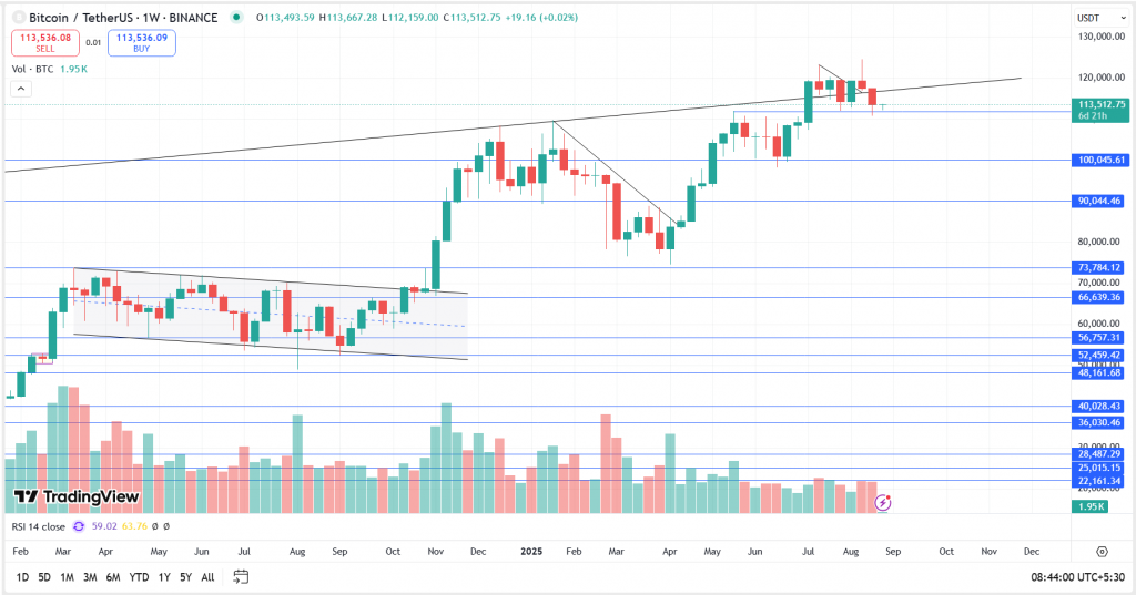 Bitcoin heads into the weekly close with $114,000 on the radar, as late-week momentum loses steam. Ether continues to command attention after setting fresh all-time highs, with on-chain data suggesting whales are rotating out of BTC into ETH. Over the weekend, price action stayed relatively muted following Friday’s sharp rally that briefly pushed Bitcoin near $117,500. The surge was fueled by remarks from Federal Reserve Chair Jerome Powell at the Jackson Hole economic symposium, where he signaled that interest-rate cuts could resume as early as September — a move that reignited market optimism.