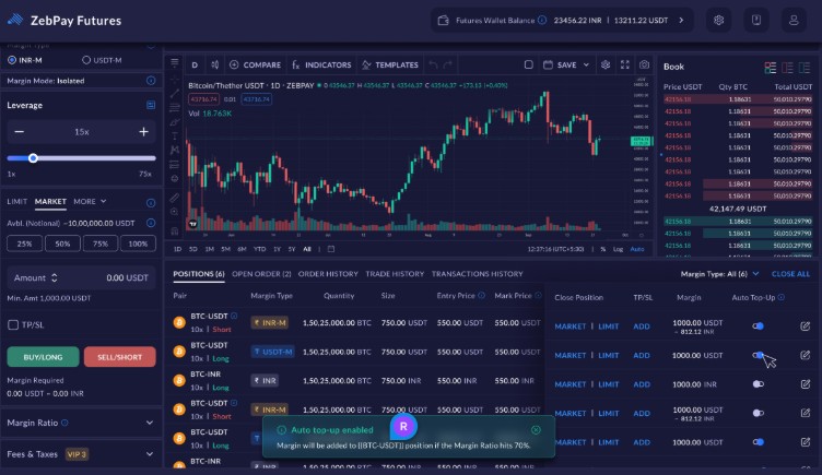 ZebPay’s Auto-Top Up feature is built to make your futures trading smoother and more secure. It helps safeguard your positions against sudden dips while ensuring you stay informed at every step. Activate it once and then trade with greater confidence, knowing that your positions are automatically protected when the market turns volatile.