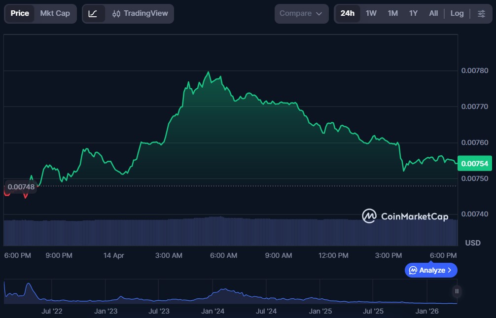 | Astar (ASTR) | $0.007541 | $64.71 million | $1.44 million |
