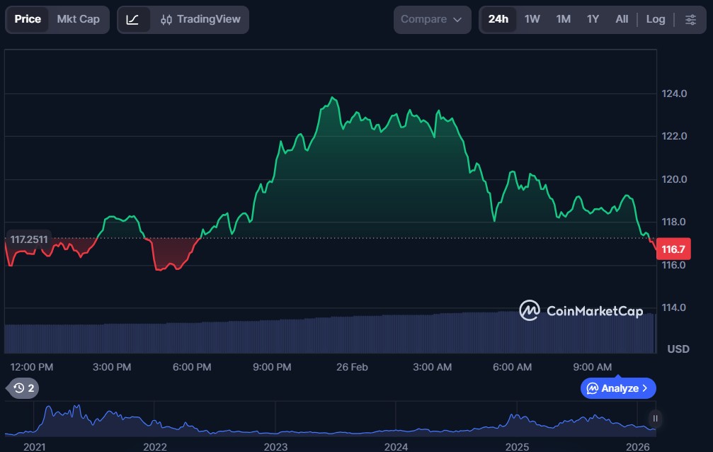 | Aave (AAVE) | $116.83 | $1.79 billion | $465.44 million |