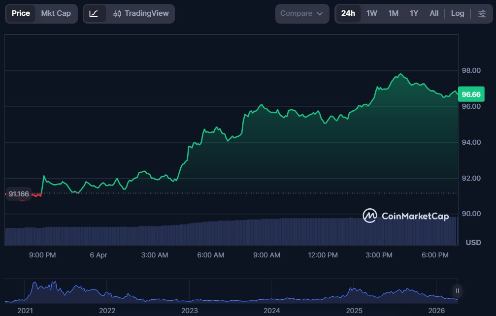 | Aave (AAVE) | $96.66 | $1.48 billion | $255.86 million |