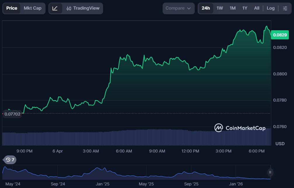 | Ethena (ENA) | $0.08340 | $725.95 million | $89.65 million |