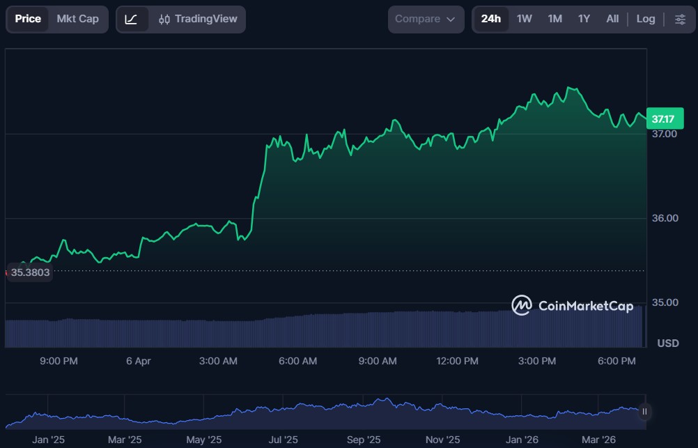 | Hyperliquid (HYPE) | $37.18 | $9.51 billion | $171.61 million |