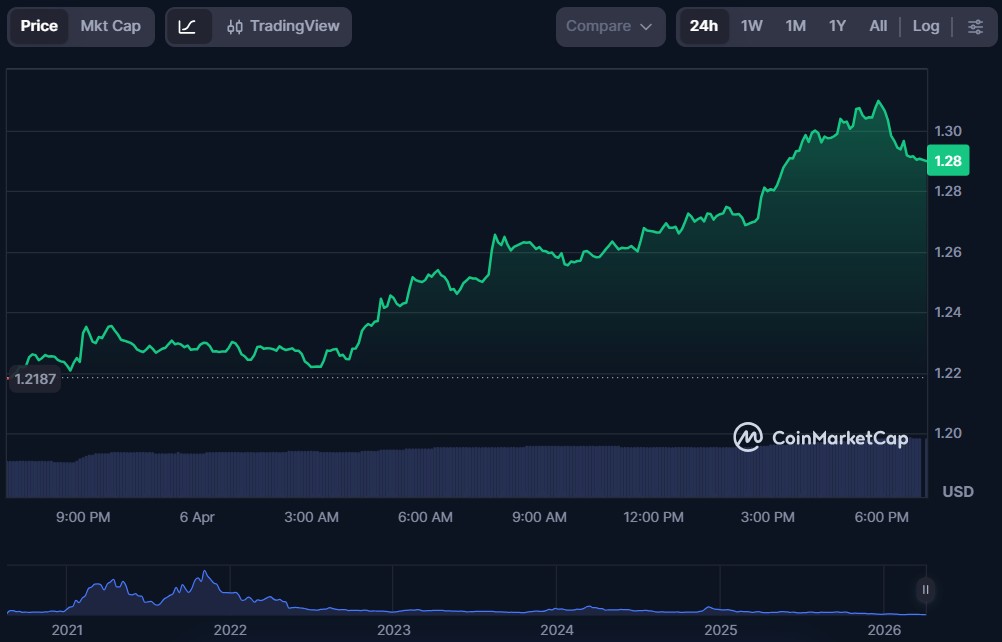 | Polkadot (DOT) | $1.28 | $2.16 billion | $129.10 million |