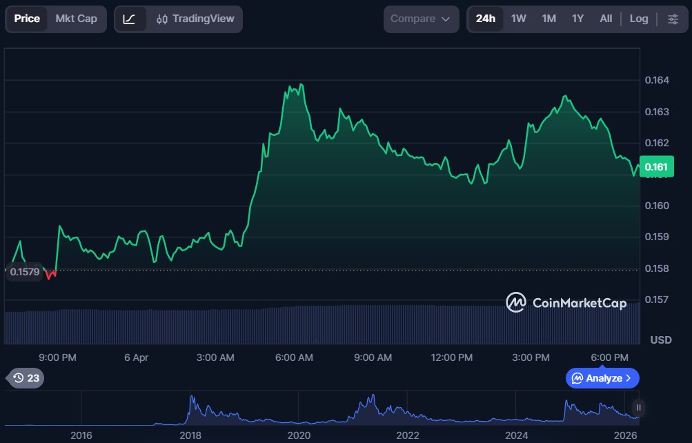 | Stellar (XLM) | $0.1612 | $5.33 billion | $105.63 million |