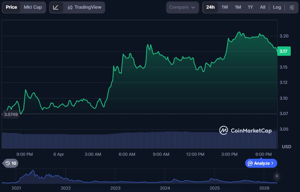 | Uniswap (UNI) | $3.18 | $2 billion | $145.41 million |