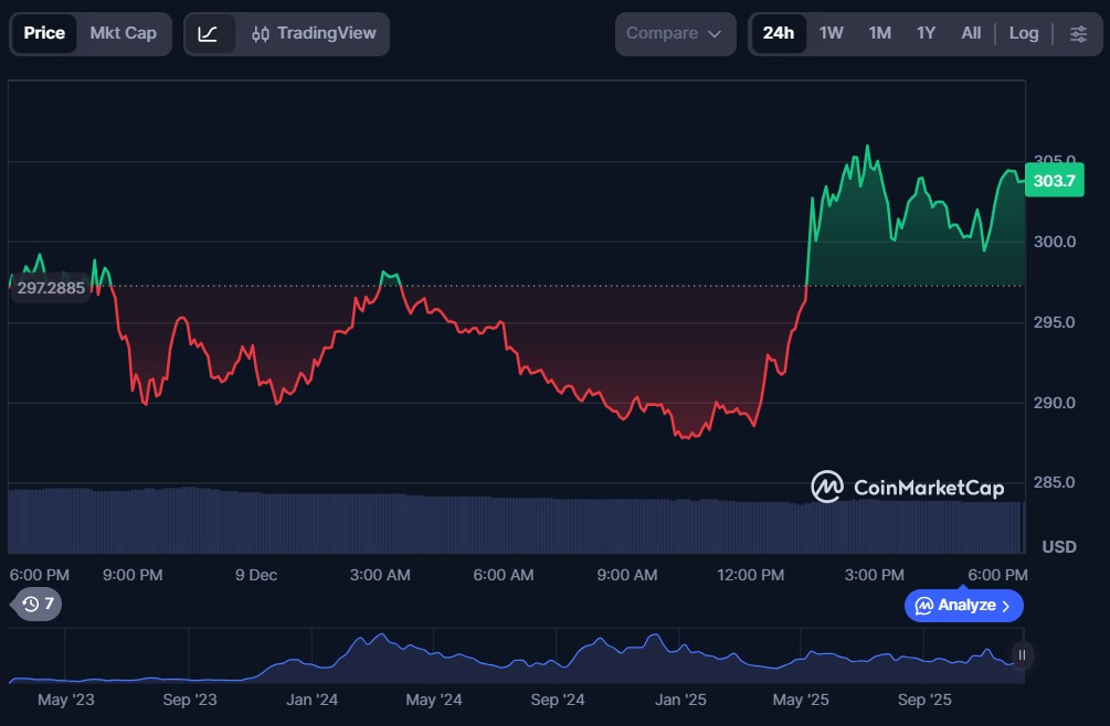 | Bittensor | $303.76 | $3.17 billion | $143.67 million |