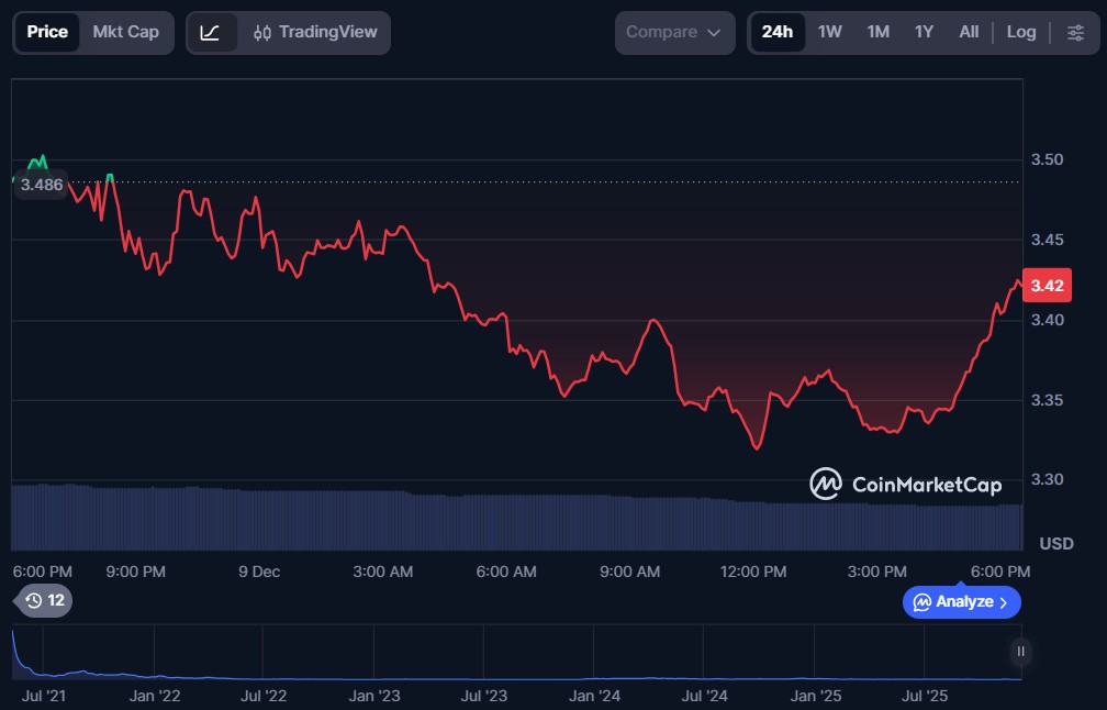 | Internet Computer | $3.42 | $1.85 billion | $78.09 million |