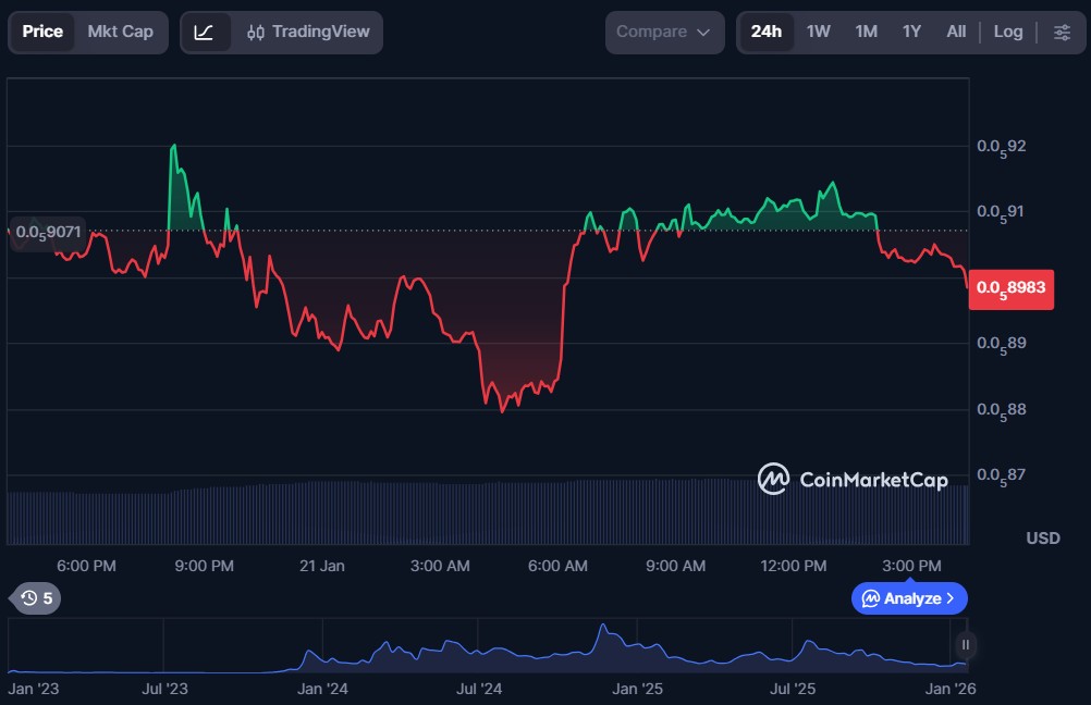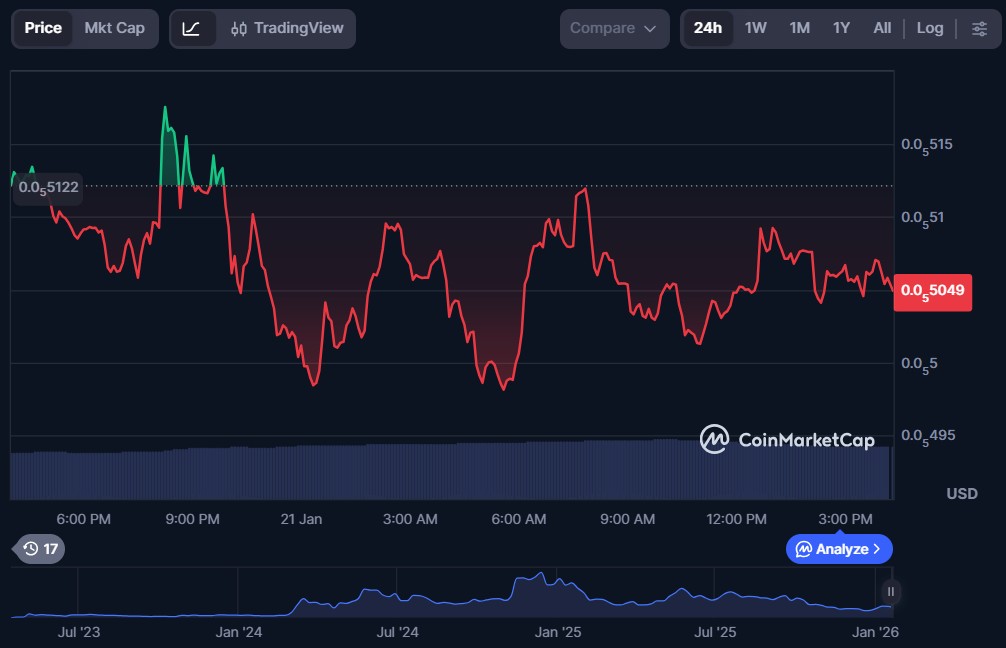 Floki (FLOKI) stands out as a dog-themed meme coin that aims to deliver real utility beyond its image of a Joke Coin. It is supported globally by a passionate community known as the “Floki Vikings” and the project has expanded into a broader ecosystem featuring Valhalla, its own metaverse play-to-earn game. In addition, Floki offers a suite of DeFi tools through FlokiFi, enabling users to stake, swap, and participate in yield-generating opportunities within its ecosystem.