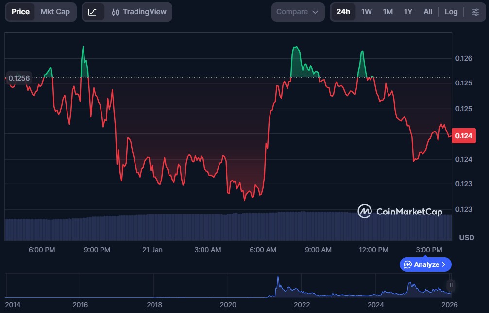 | Dogecoin (DOGE) | $0.1244 | $20.95 billion | $1.24 billion |
