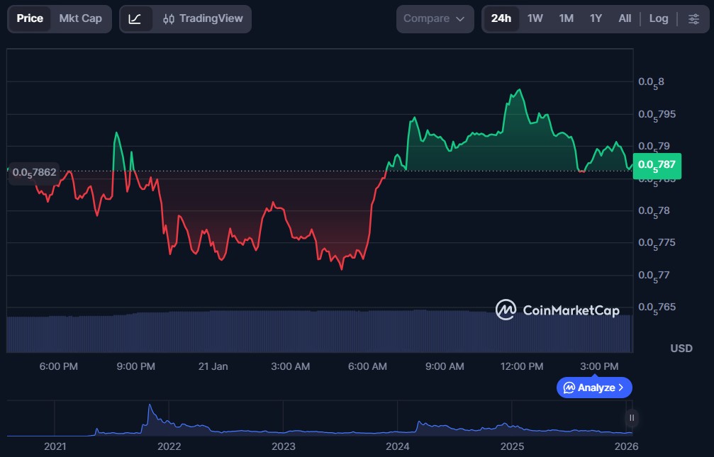 | Shiba Inu (SHIB) | $0.000007871 | $4.63 billion | $104.40 million |