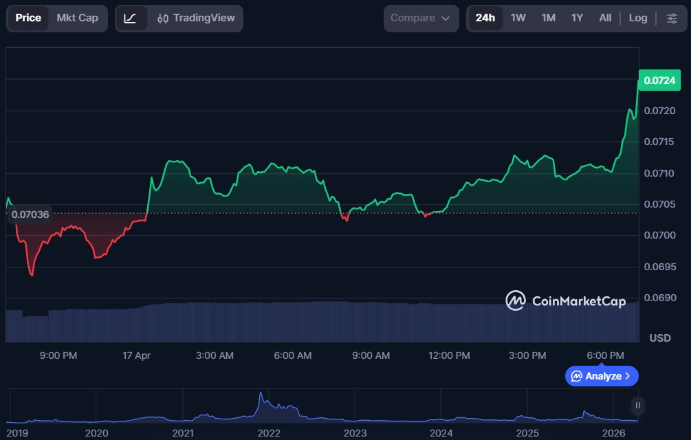 | Cronos (CRO) | $0.07193 | $3.15 billion | $11.01 million |