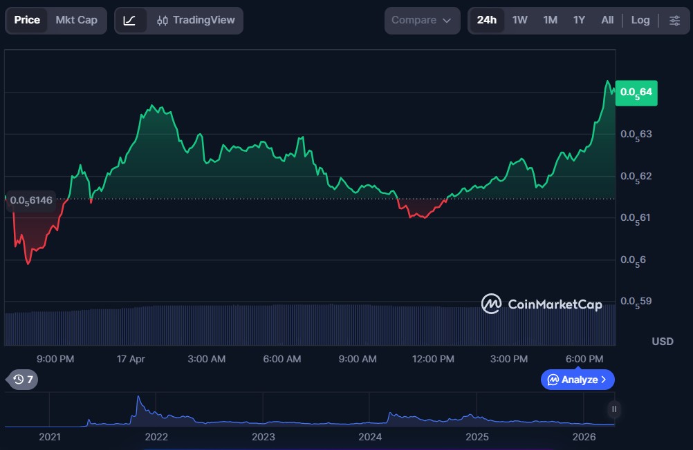 | Shiba Inu (SHIB) | $0.0000064 | $3.77 billion | $180.86 million |