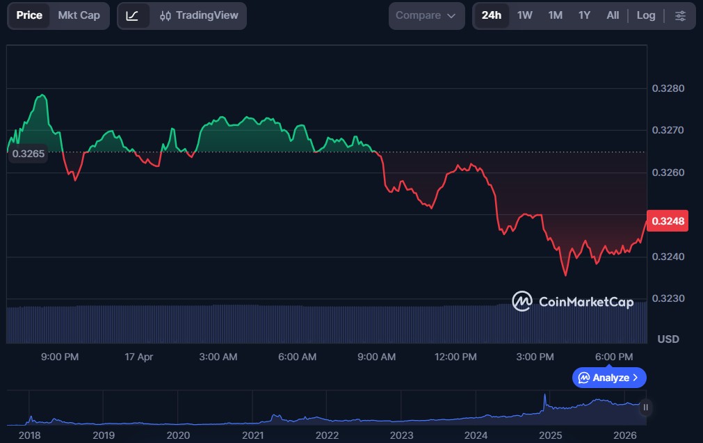| TRON (TRX) | $0.3247 | $30.77 billion | $806.69 million |