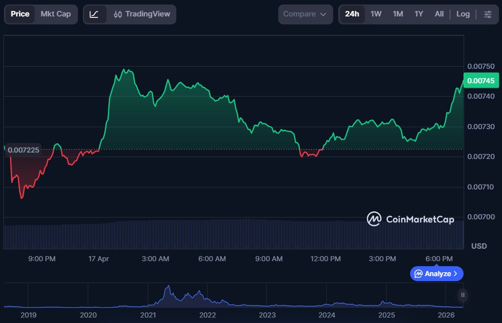 | VeChain (VET) | $0.007451 | $640.75 million | $26.71 million |