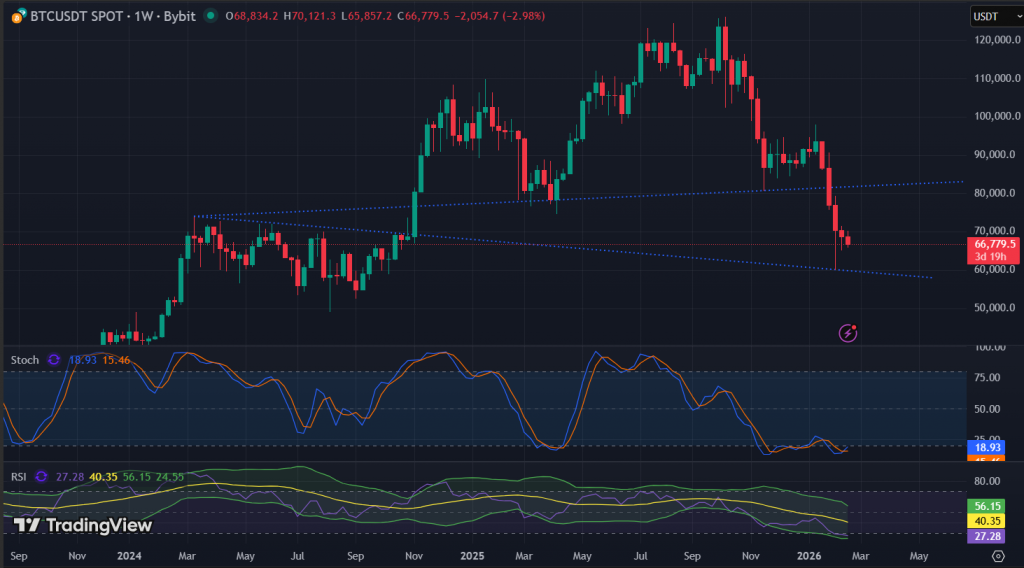 BTC has a market cap of $1.33 trillion as of date, while the total crypto market cap stands at $2.3 trillion. On the weekly chart, BTC witnessed a sharp fall from the $92,000-odd levels and hit a record low of $60,000 in the last 16 months.