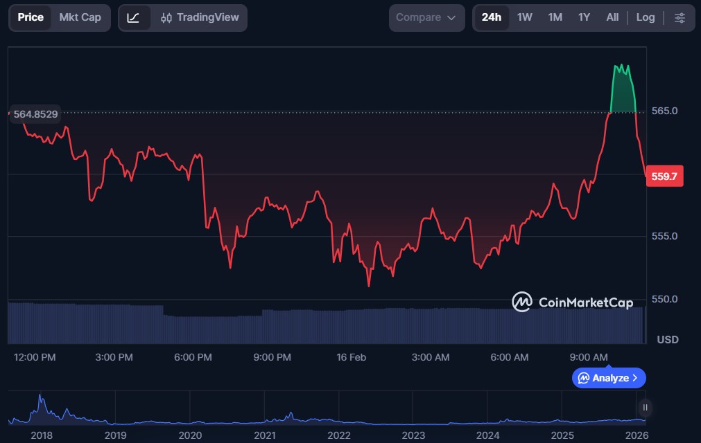 | Bitcoin Cash (BCH) | $559.36 | $11.18 billion | $345.63 million |