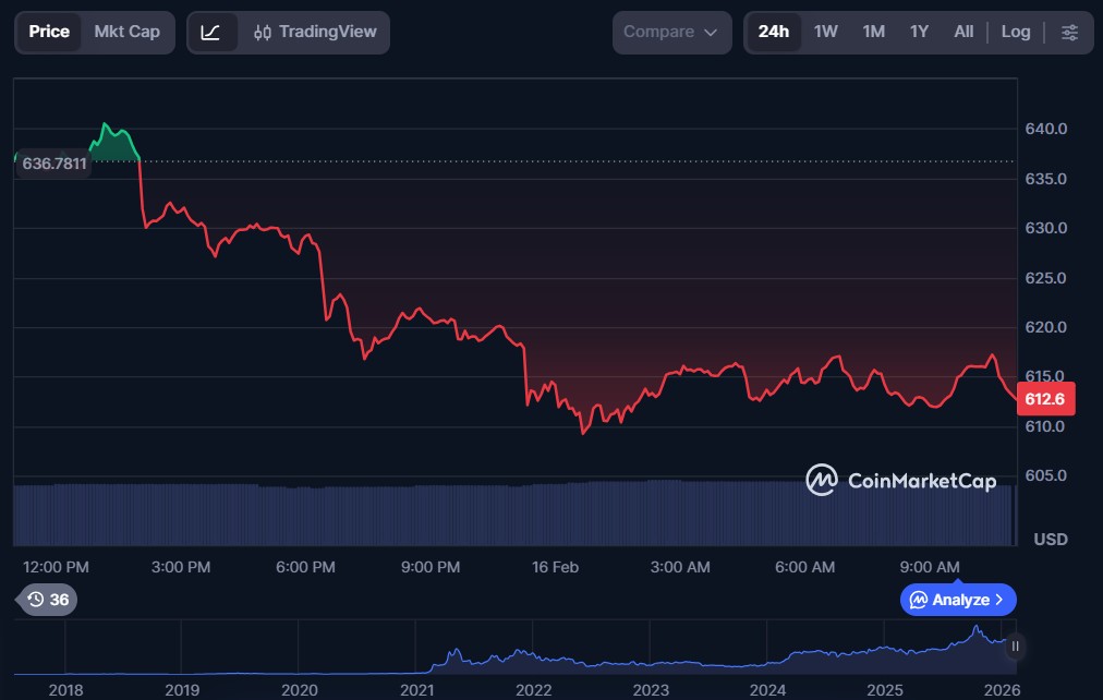 | BNB (BNB) | $612.74 | $83.54 billion | $1.45 billion |