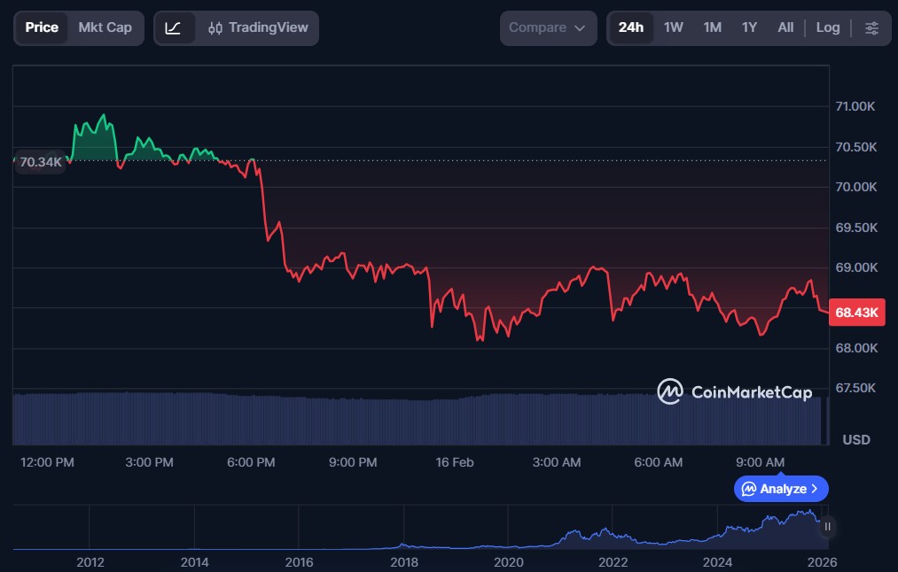 | Bitcoin (BTC) | $68,450.99 | $1.36 trillion | $37.77 billion |