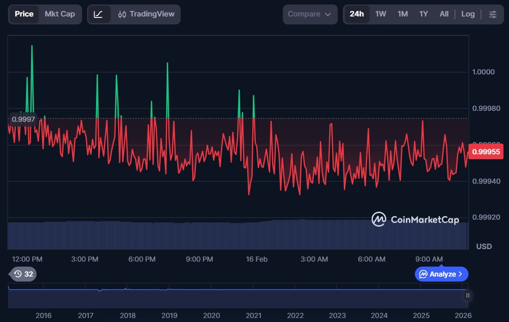 | Tether (USDT) | $0.9995 | $183.70 billion | $86.53 billion |