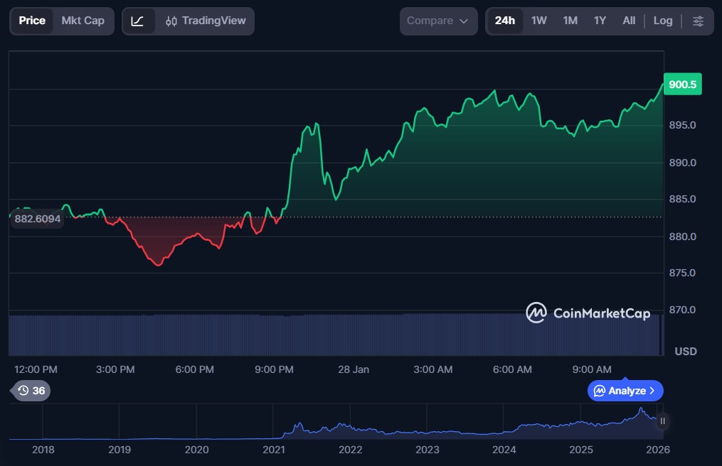 | BNB (BNB) | $900.58 | $122.80 billion | $2.04 billion |