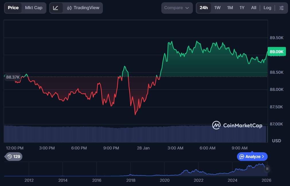 | Bitcoin (BTC) | $89,085.71 | $1.78 trillion | $38.06 billion |