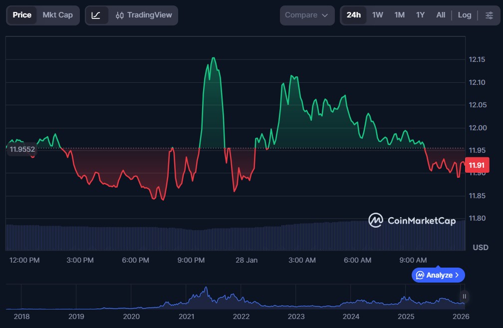 | Chainlink (LINK) | $11.92 | $8.43 billion | $365.09 million |
