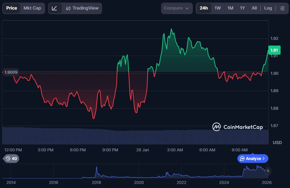 | XRP (XRP) | $1.90 | $116.20 billion | $2.22 billion |
