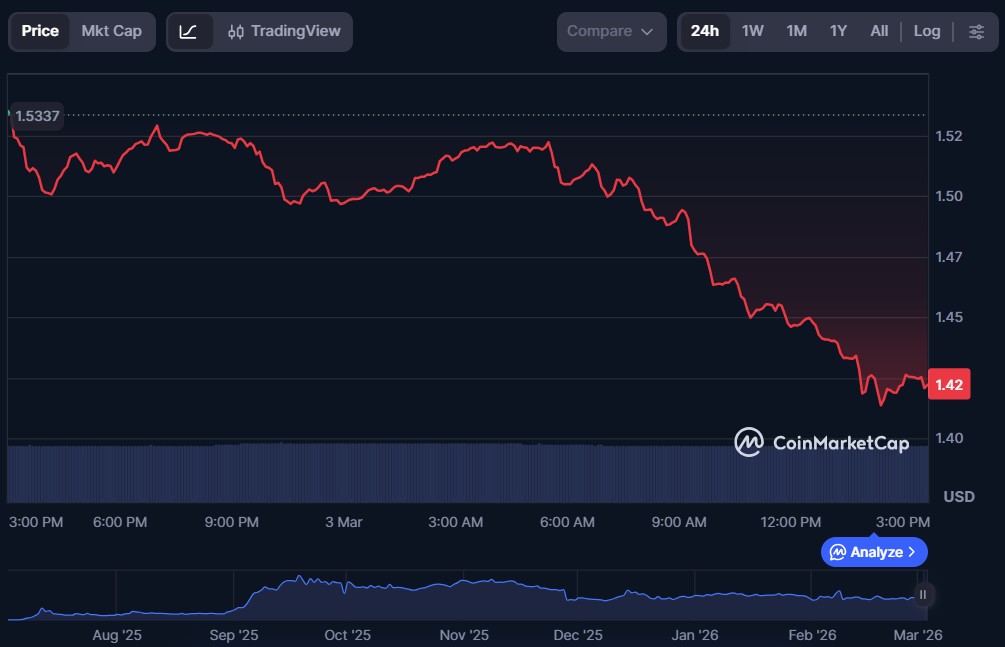 | MemeCore (M) | $1.42 | $1.81 billion | $8.68 million |