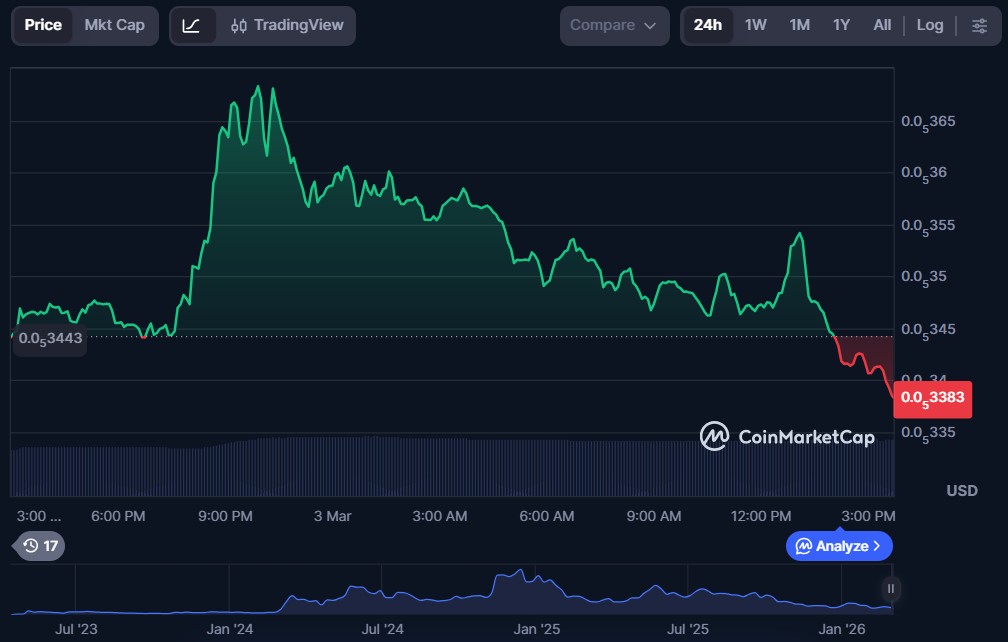 | Pepe (PEPE) | $0.000003382 | $1.39 billion | $428.52 million |
