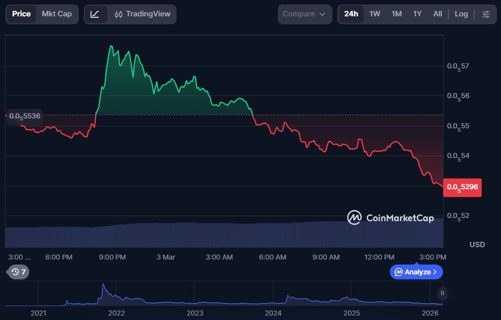 Floki (FLOKI) stands out as a dog-themed meme coin that aims to deliver real utility beyond its image of a Joke Coin. It is supported globally by a passionate community known as the “Floki Vikings” and the project has expanded into a broader ecosystem featuring Valhalla, its own metaverse play-to-earn game. In addition, Floki offers a suite of DeFi tools through FlokiFi, enabling users to stake, swap, and participate in yield-generating opportunities within its ecosystem.