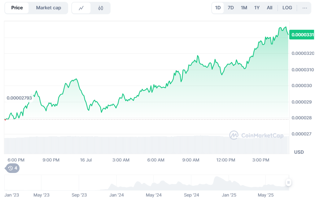 Beyond its meme-driven appeal, Bonk benefits from Solana’s high-speed, low-cost infrastructure, making it attractive for traders and developers. Its widespread adoption in Solana-based platforms, combined with active community engagement and increasing utility across DeFi and gaming applications, has helped solidify BONK as one of the ecosystem’s most recognizable tokens.