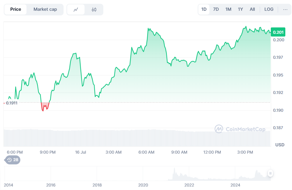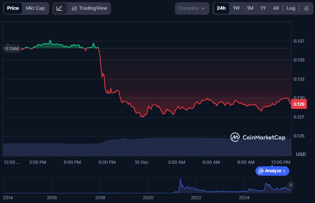 | Dogecoin | $0.1285 | $19.56 billion | $1.36 billion |