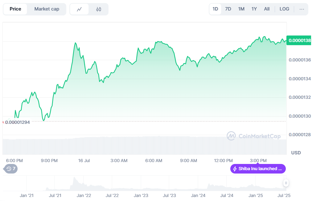 | Shiba Inu | $0.000007781 | $4.58 billion | $125.39 million |