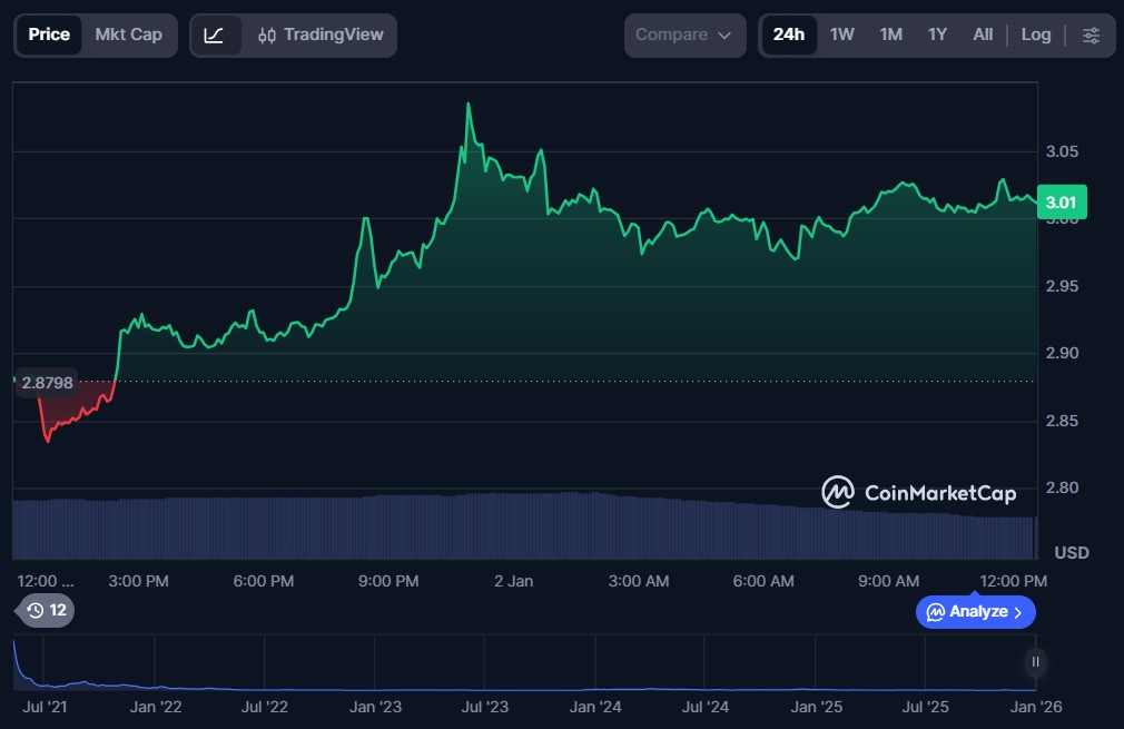 | Internet Computer | $3.01 | $1.64 billion | $108.19 million |
